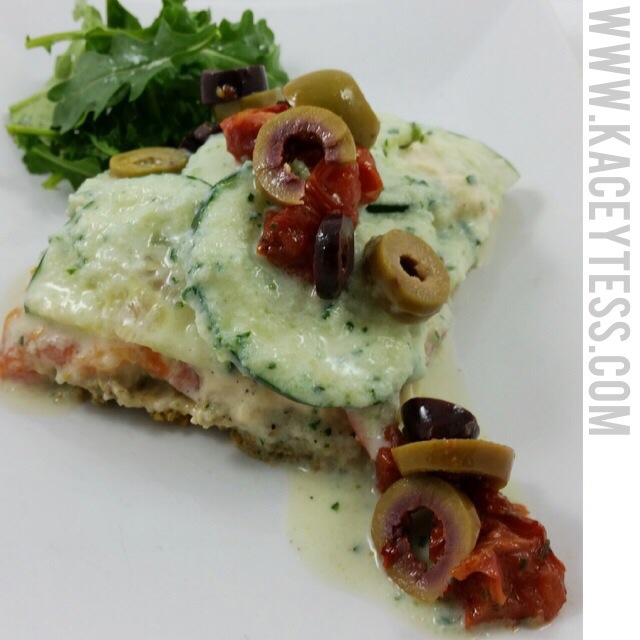 Top with roasted red peppers and sliced olives