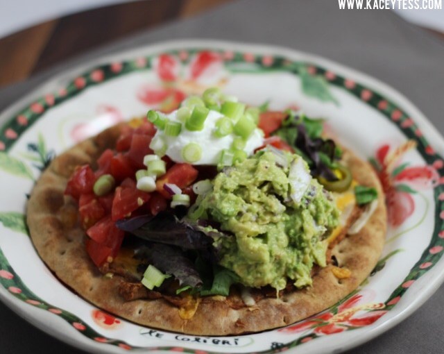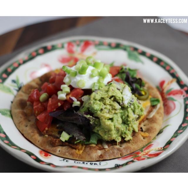 Add greens, tomatoes, guacamole, sour cream and any other veggies you like
