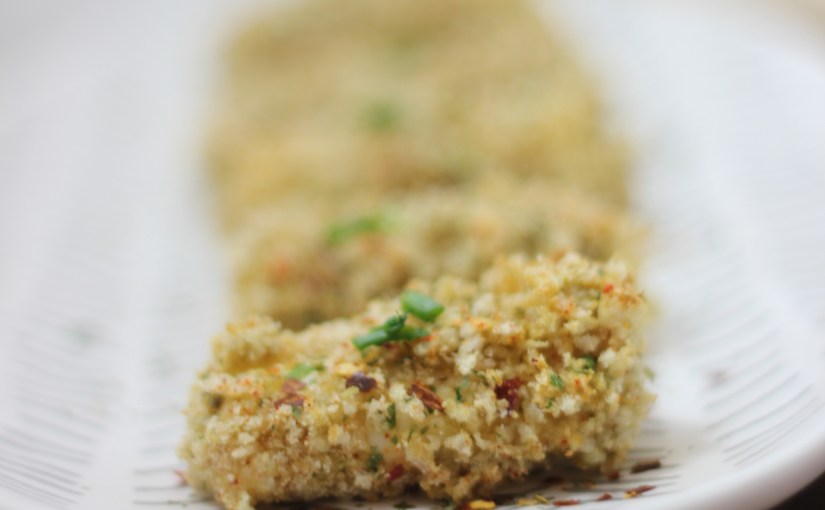 Dip each of the cheese sticks in the egg mixture, then into the bread mixture