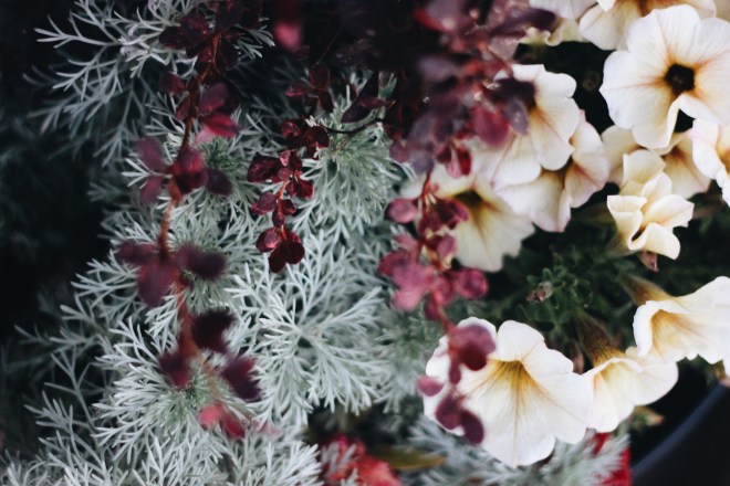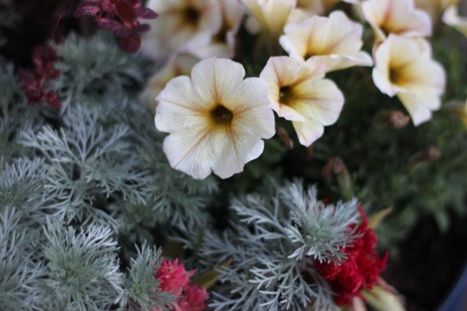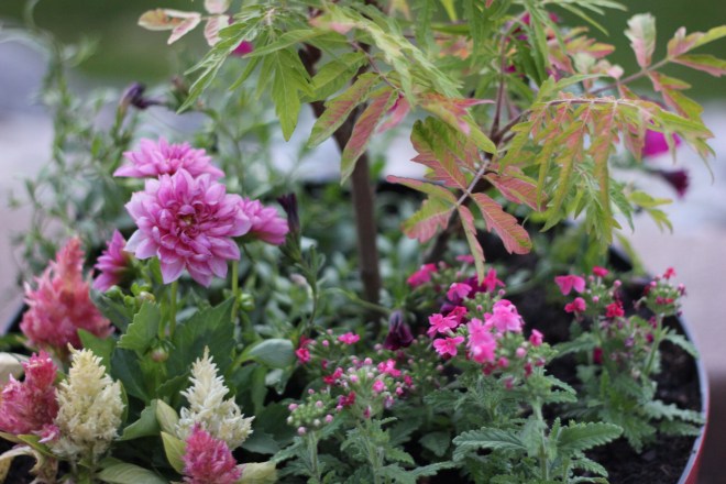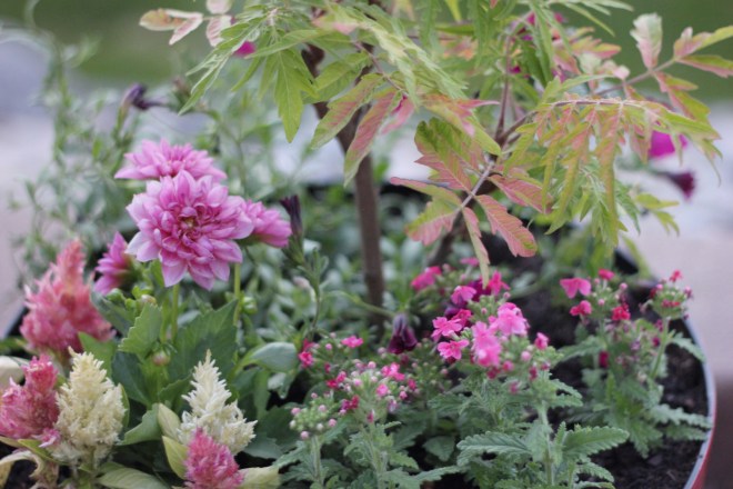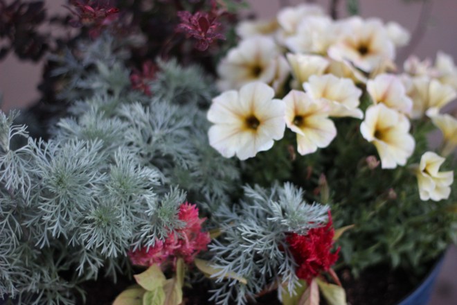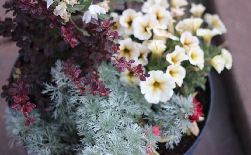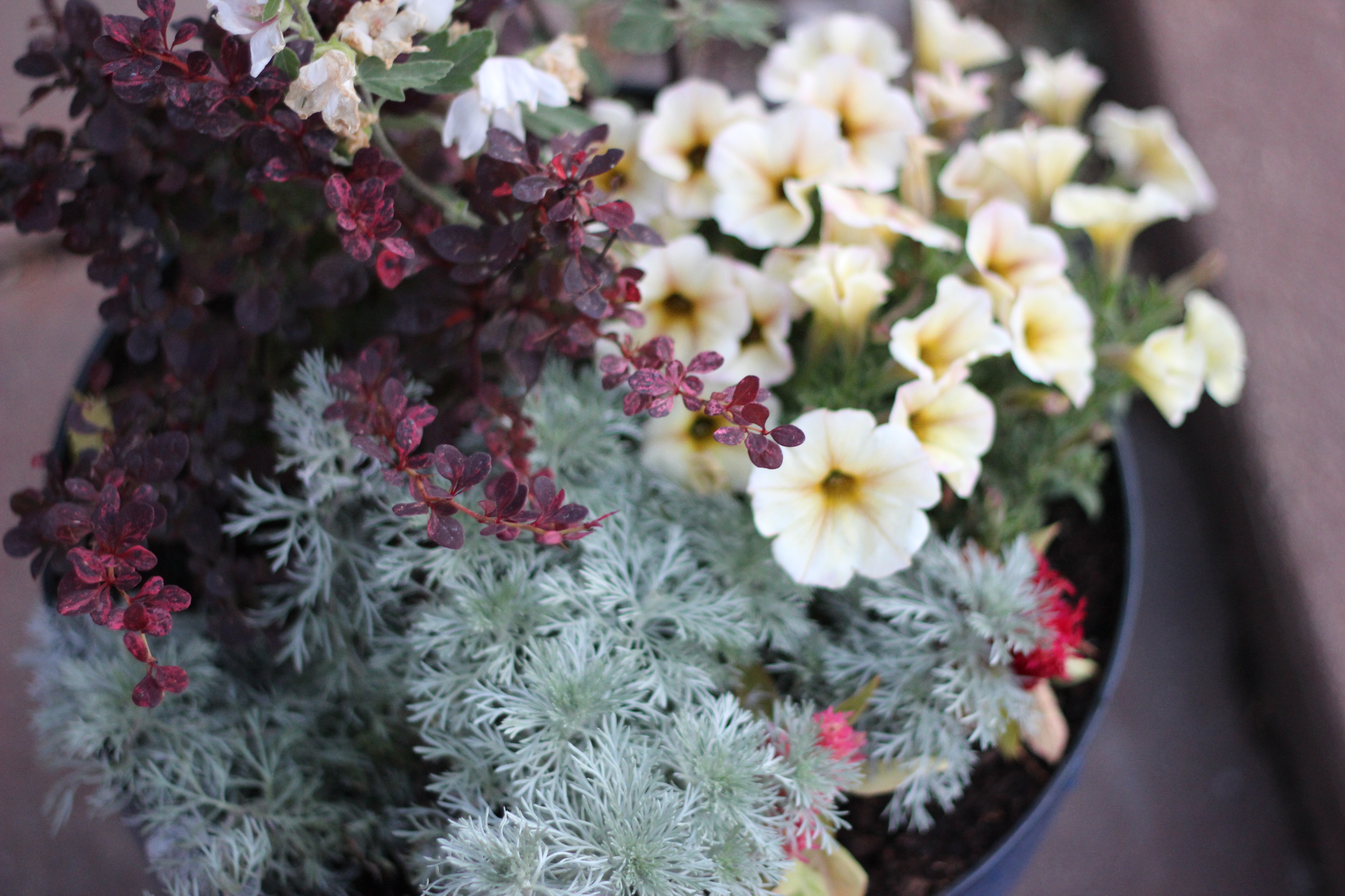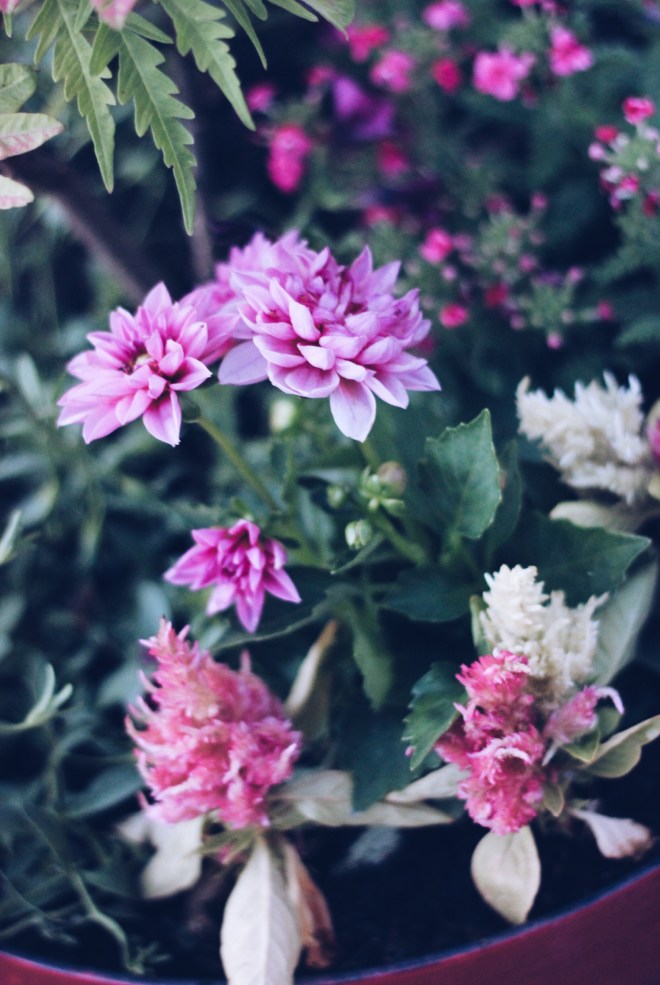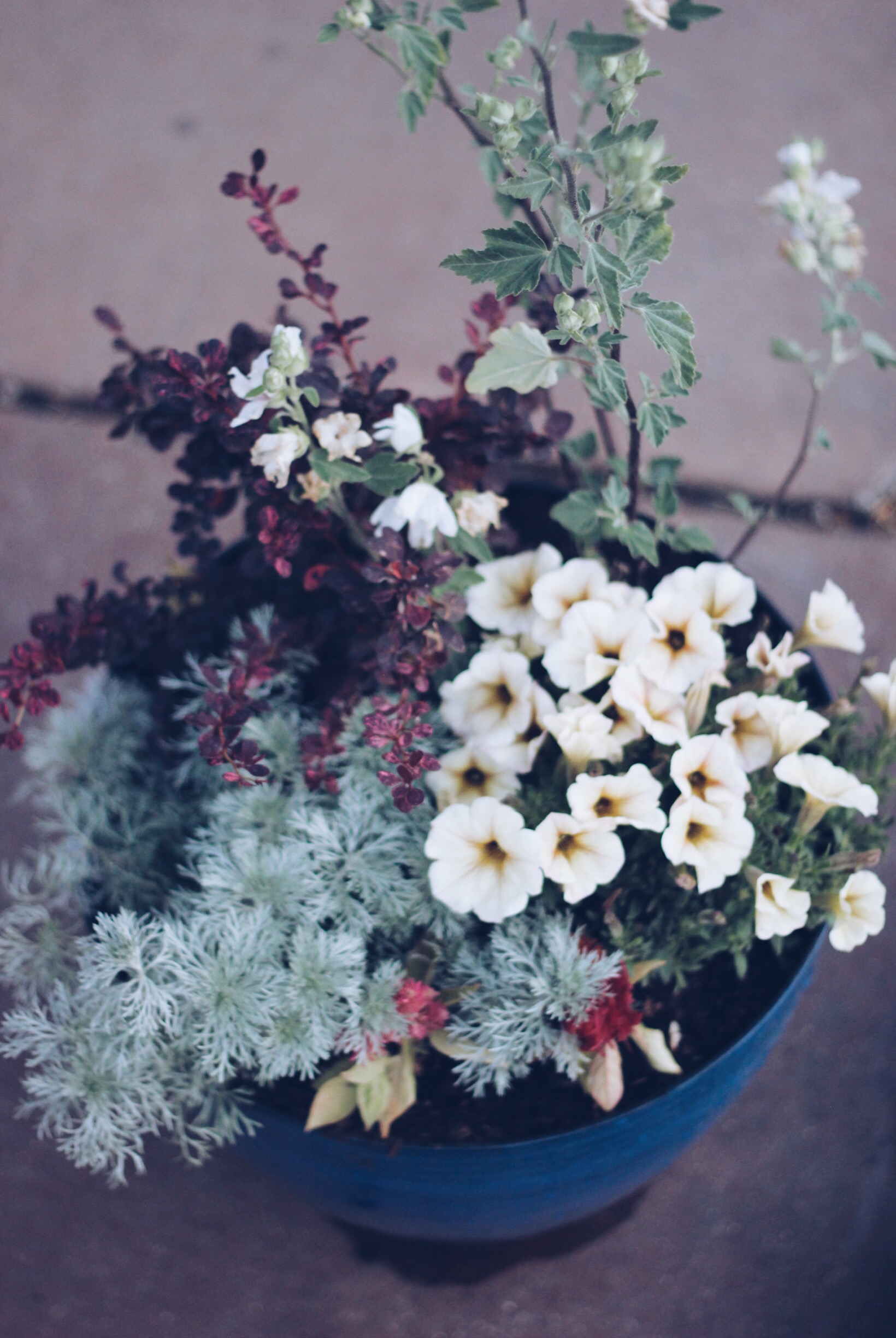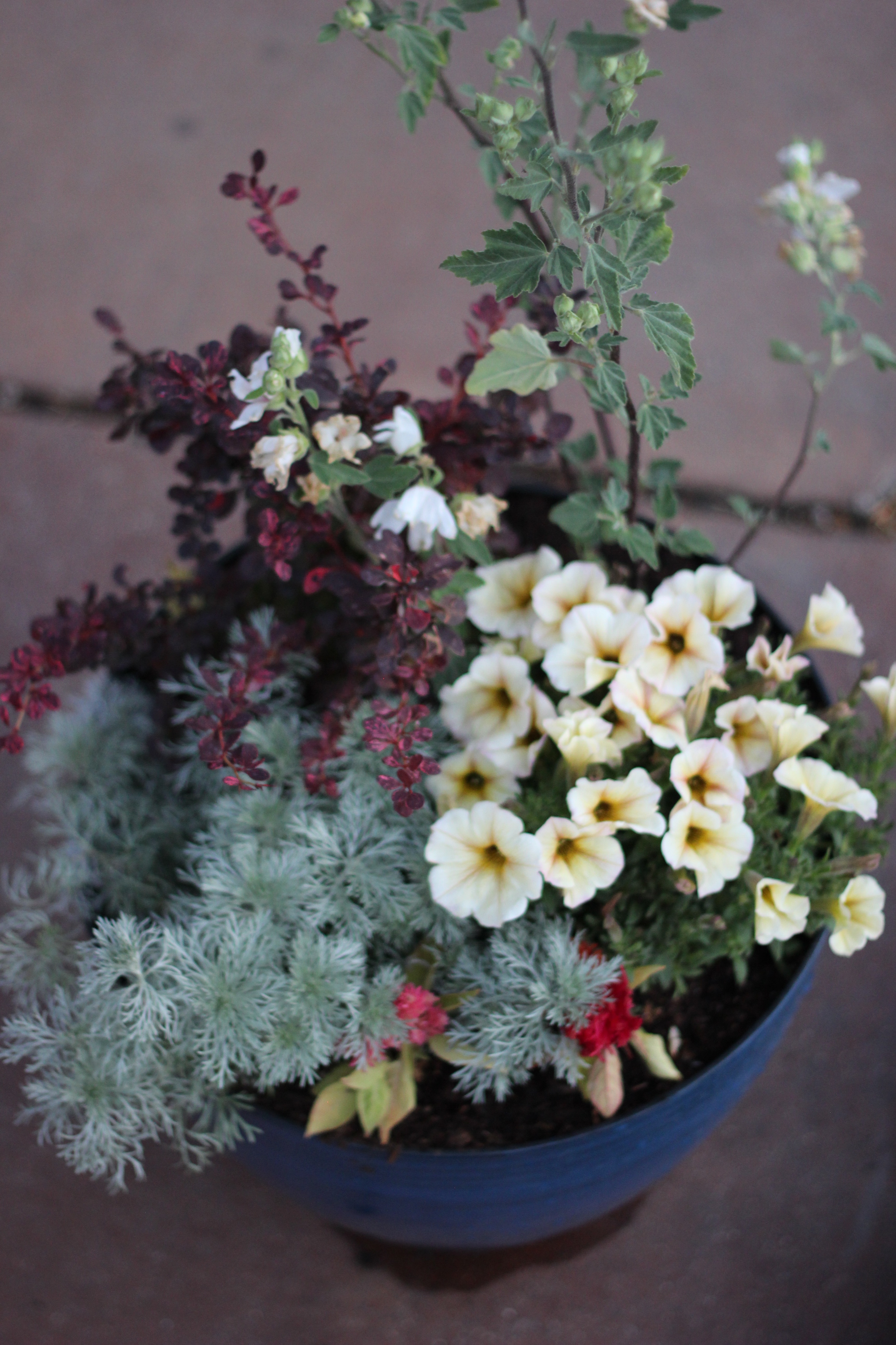 I found the cutest planters at Big Lots for $10 over the weekend! I love the bright colors, I got one of each. I did drill a few holes in the bottom to help with drainage as well as putting a few rocks in the bottom. I filled the planters about half way up with my own soil and then used a potting mix for the rest. I went to Glover nursery in West Jordan to get all my plants. I love mixing so the bright colors. I did a mix of bright annuals along with some perennials I will transplant into my yard in fall. Here are a few photos of the finished products.