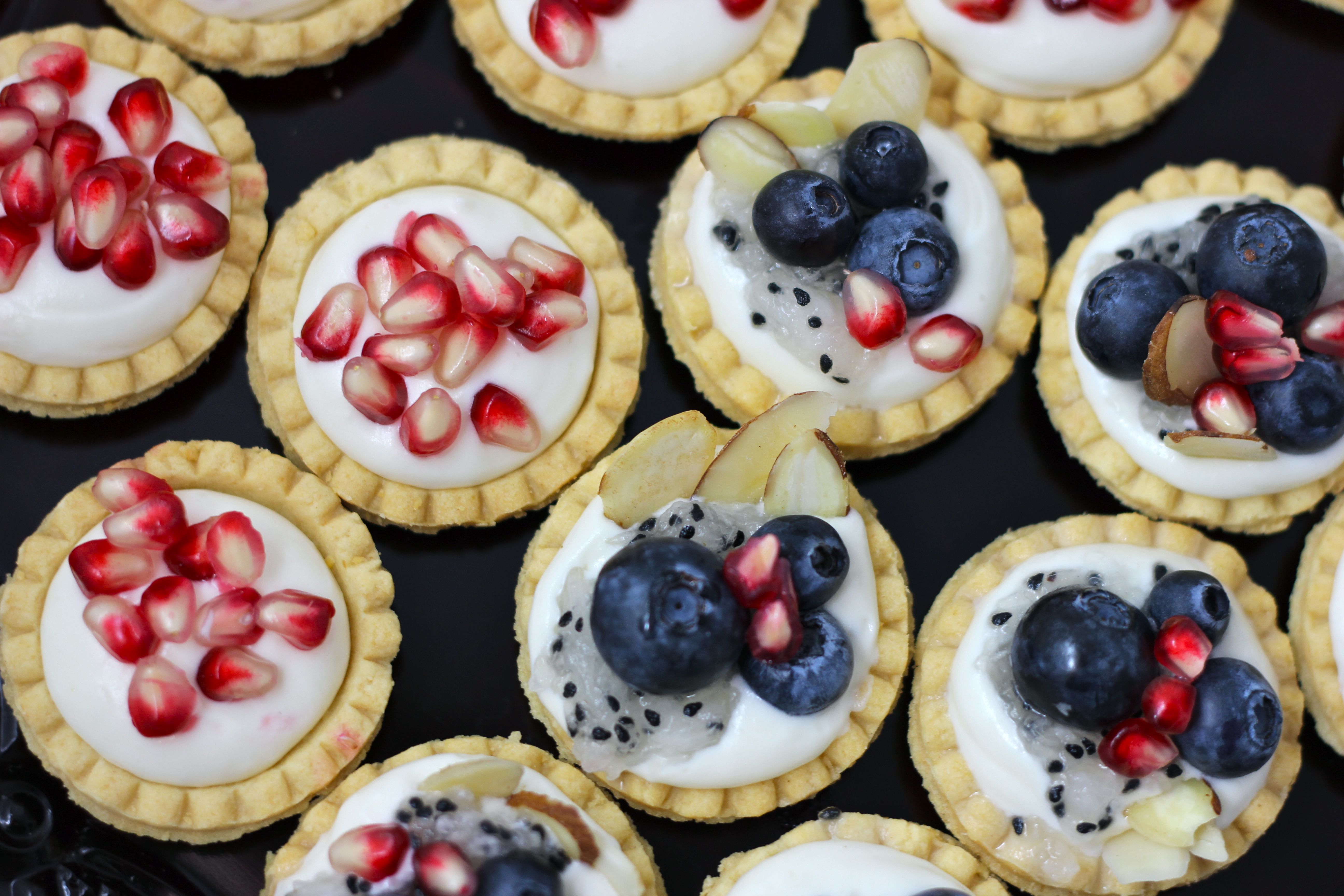 Dragonfruit-Pomegranate Cheesecake Tarts