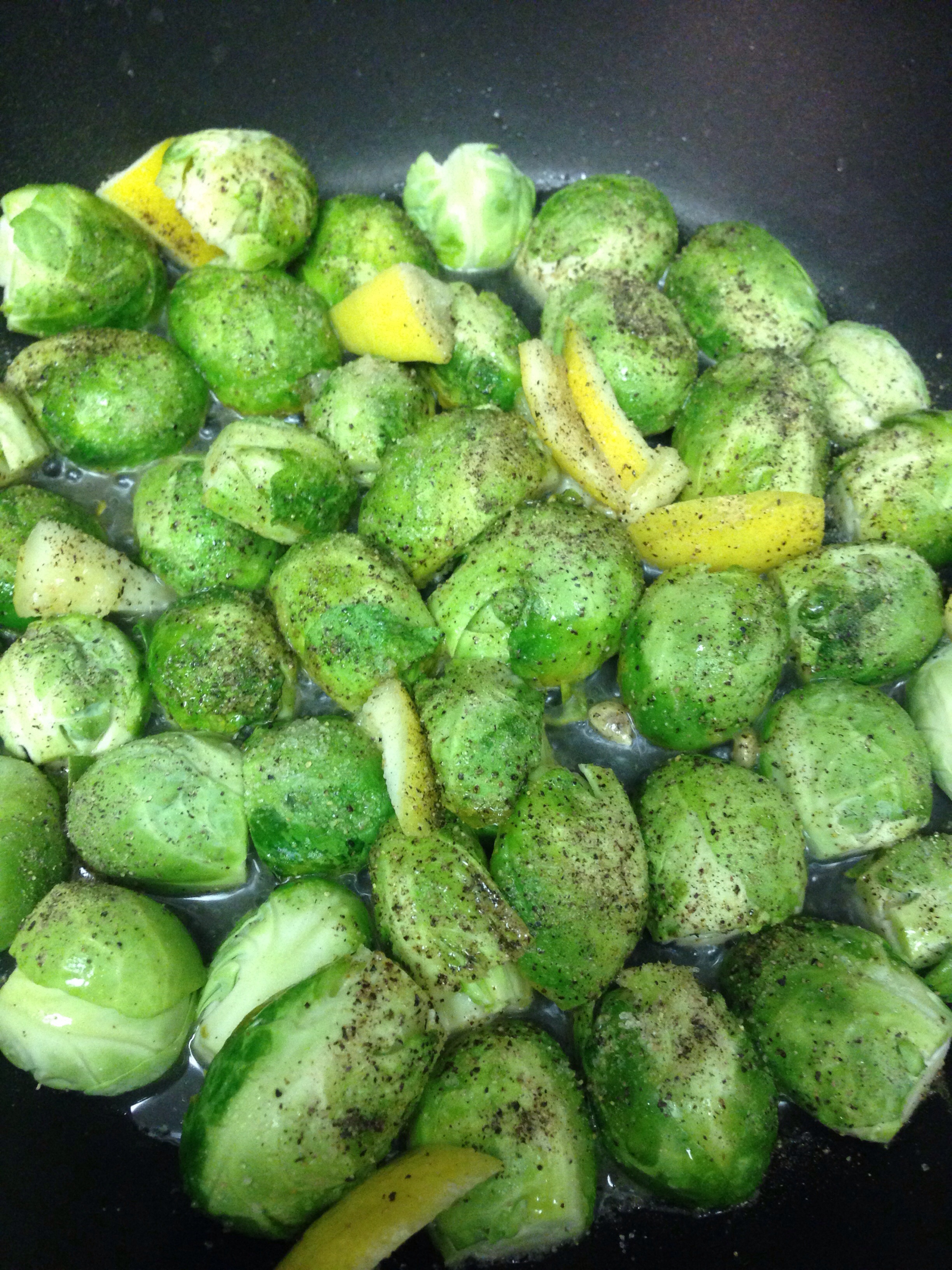 Add brussel sprouts and juice from 1 lemon and the rhine(remove before serving)